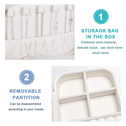 - 【متعدد الوظائف】صندوق مجوهرات للسفر بطبقة مزدوجة، يوفر لوحة مسامير و5 خطافات للقلائد وأخاديد الخواتم ومساحة تخزين قابلة للتعديل، مثالي لوضع الخواتم والأقراط والقلائد والأساور والساعات ودبابيس الشعر. بالإضافة إلى ذلك، فإن صندوق المجوهرات هذا مجهز أيضًا بمرآة مدمجة.
