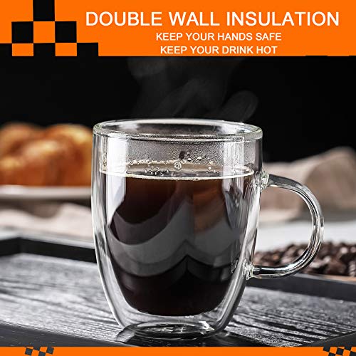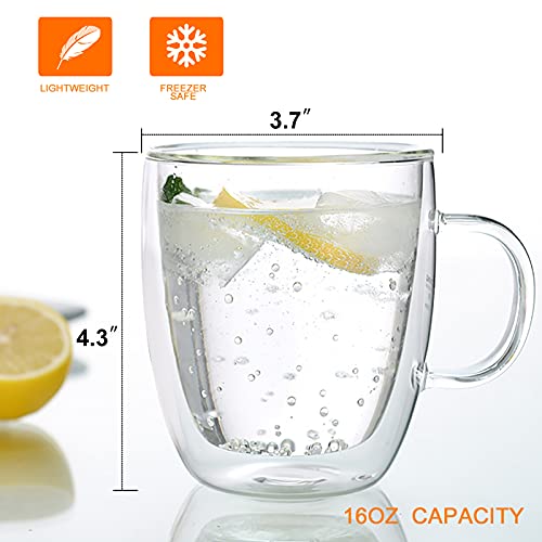 Vivimee - اكواب قهوة معزولة من 4 قطع شاي زجاجية فيفيمي كبيرة 16 اونصة 500 مل مزدوجة الجدار لاتيه شفاف