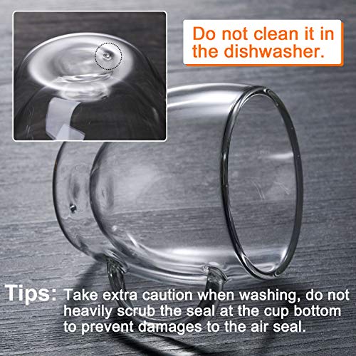 - ✅ لا تنظف في غسالة الأطباق - هذا المنتج عبارة عن زجاج مبتكر عازل للحرارة مصنوع يدويًا والنفخ، وعملية الإنتاج صعبة ومعقدة للغاية. نظرًا لأن الكوب نفسه خفيف جدًا ومصنوع من الزجاج، فلا تكن وقحًا جدًا عند استخدامه. توخي الحذر عند الغسيل، لا تقم بفرك الختم بشكل كبير في الجزء السفلي من الكوب لمنع تلف سدادة الهواء.