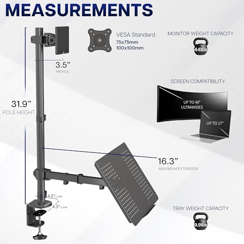 VIVO - فيفو حامل لابتوب وشاشة ال سي دي مكتب مرتفع للغاية قابل للتعديل يناسب شاشة واحدة حتى 27 بوصة ستاند-v012c سبيكة صلب