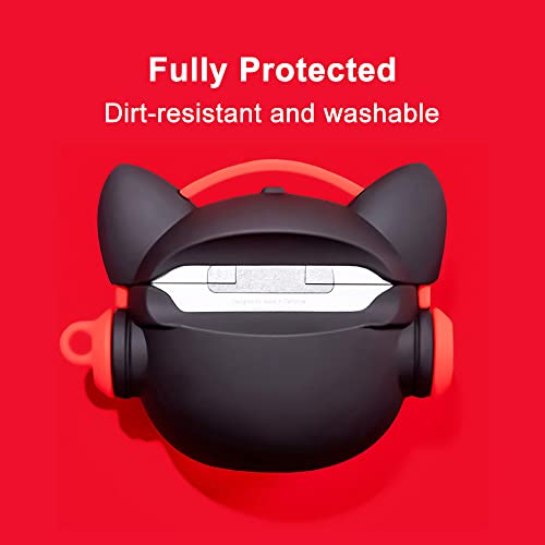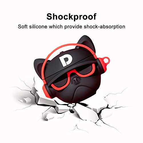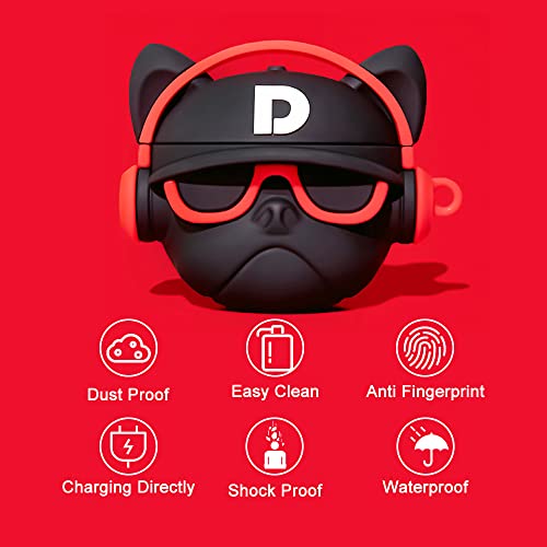 Viwind - جراب سيليكون لسماعات ايربودز برو مع خطاف سلسلة مفاتيح من في ويند، جراب لطيف ومضحك فريد من نوعه ثلاثي الأبعاد بتصميم انيمي ايربود برو، غطاء حماية مضاد للصدمات يدعم الشحن اللاسلكي - أحمر بولدوج