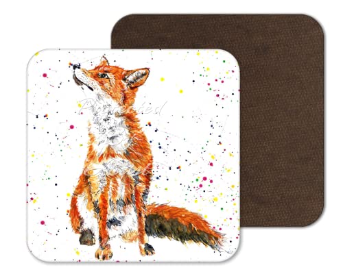 Vixar - قاعدة اكواب بتصميم ثعلب بريطاني وحياة برية مرسومة باليد بالوان مائية، هدية فنية للعمل والمكتب والطعام والشاي والقهوة- 4