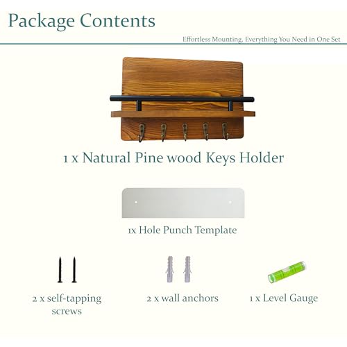 - [المادة] حامل مفاتيح عالي الجودة مصنوع من خشب الصنوبر، مما يجعله قوي ومتين بما يكفي لتثبيت مفاتيحك وغيرها من المقتنيات بأمان في مكانها.