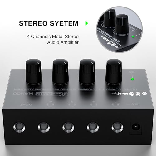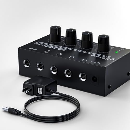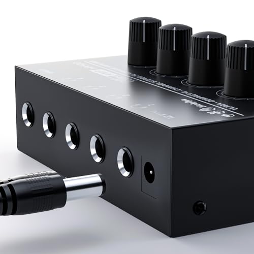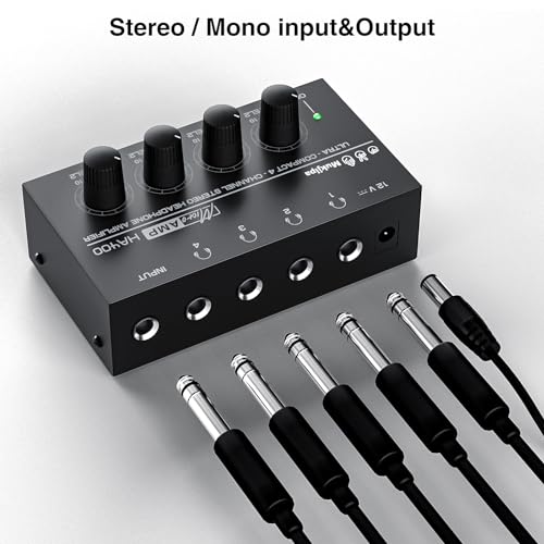 - 【مصدر صوت ستيريو】4 قنوات مضخم صوت، مع زر تعديل صوت مستقل، يمكن استخدامه لما يصل إلى أربعة مخارج: بدون انفجار صوت، ويتميز بالحد الأدنى من التشويش عند أقصى صوت. الإشارة لا تضيع عند توصيل جميع سماعات الرأس الأربعة. سيكون مضخم سماعة الرأس ذو الأربع قنوات ممتازًا، مما يسمح لما يصل إلى أربعة أشخاص بمراقبة الصوت في وقت واحد للتتبع.