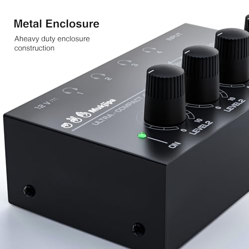 - 【خفيف الوزن وبسيط】ميكسر سماعة رأس بهيكل معدني قوي، واتصال محكم، ومقبض تشغيل سلس. مثالي للمسرح والأماكن الداخلية أو التطبيقات التي تتطلب اتصالات سماعة رأس متعددة.