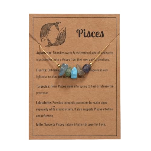 VLINRAS - سلسلة ذهبية بتصميم برج الحوت للنساء مصنوعة من الكريستال الخام والأحجار الطبيعية مع علامات الأبراج السماوية للاستشفاء والهدايا