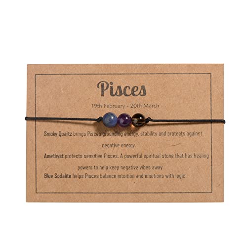 VLINRAS - اساور مزدانة باحجار كريمة طبيعية كريستالية بنمط الابراج الفلكية العلاجية للجنسين، 6 ملم, حجر, كريستال