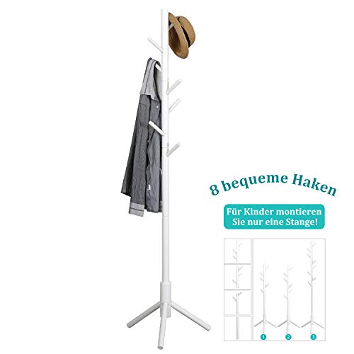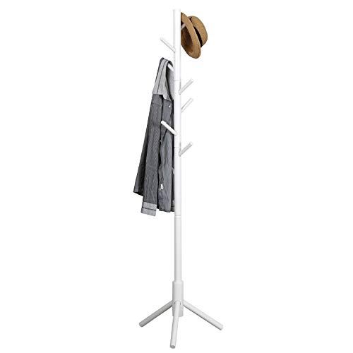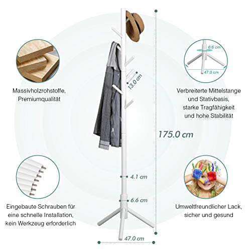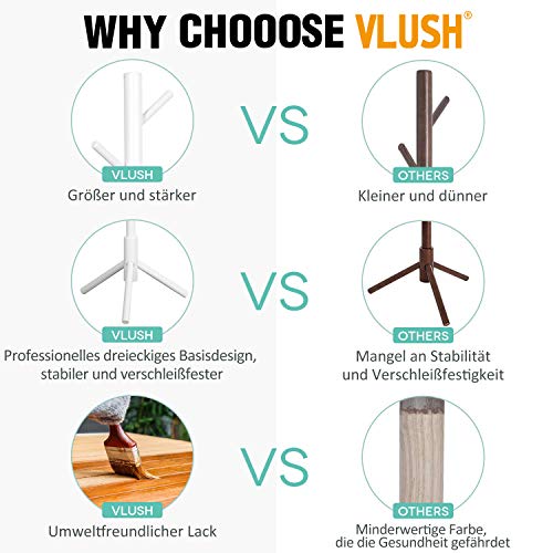 Vlush - حامل جاكيتات من الخشب متين على شكل شجرة مع قاعدة صلبة للملابس والمحفظة والسكارفات والطواقي وحامل المظلات فيلاش - أبيض