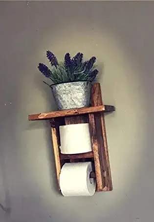 Vm decor - حامل ورق تواليت خشب للديكور، حامل بكرة مناديل للحمام من في ام ديكور، حامل حائط خشب روزوود طبيعي بتصميم ريفي باللون البني لتعليق ورق التواليت على الحائط، عبوة من قطعة واحدة