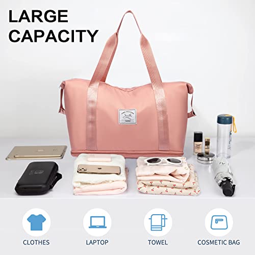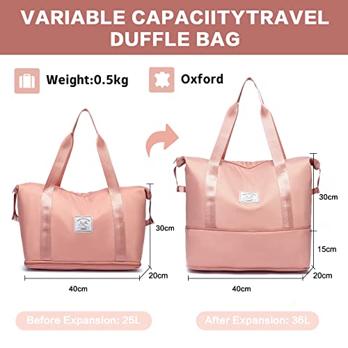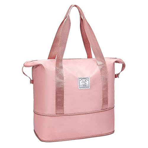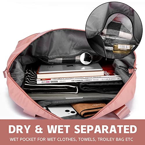 VMIKIV - شنطة حمل كبيرة للامتعة وعطلة نهاية الاسبوع، شنطة ليلية للسفر والمستشفى، مقاومة للماء ومزوة بجيب ومناسبة للنساء, زهري