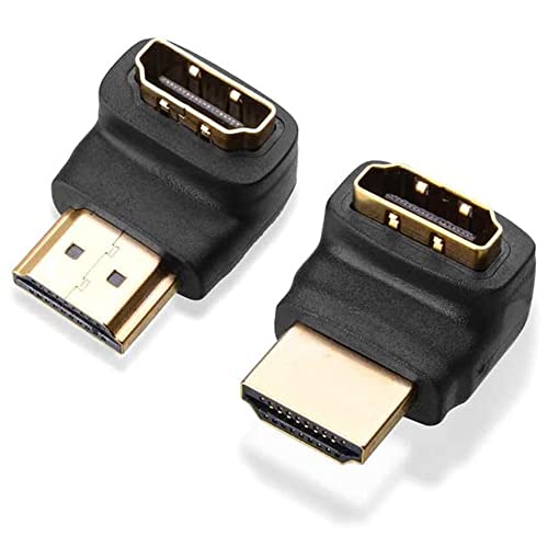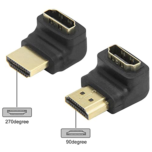 VMOJO - محول HDMI بزاوية قائمة 90 و270 درجة مطلي بالذهب عالي السرعة HDMI من ذكر إلى انثى لروكو تي في ستيك من VMOJO (عبوة من قطعتين)