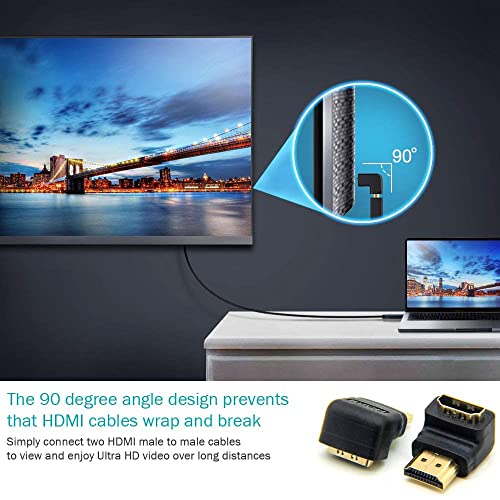 - متوافق تمامًا مع أحدث معايير 2.0 HDMI، فإن هذه المحولات بالزاوية اليمنى والزاوية اليسرى قادرة على زيادة معدل نقل البيانات لكابل HDMI 2.0 بسرعة 18 جيجابايت في الثانية.