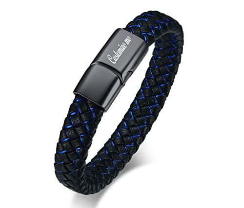 Vnox - سوار جلد ممتاز مضفر ومنقوش للرجال من في نوكس هدية للاب والرجال بتصميم صليب عنخ ونجمة داوود وعين حورس قابل للتخصيص