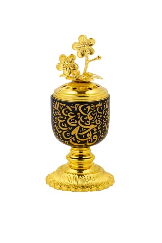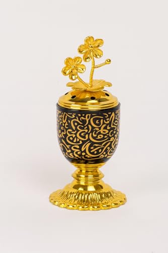 Generic - فواحة (مبخرة عتيقة مزخرفة لون اسود مع غطاء دهبي شكل وردة شكل 1)
