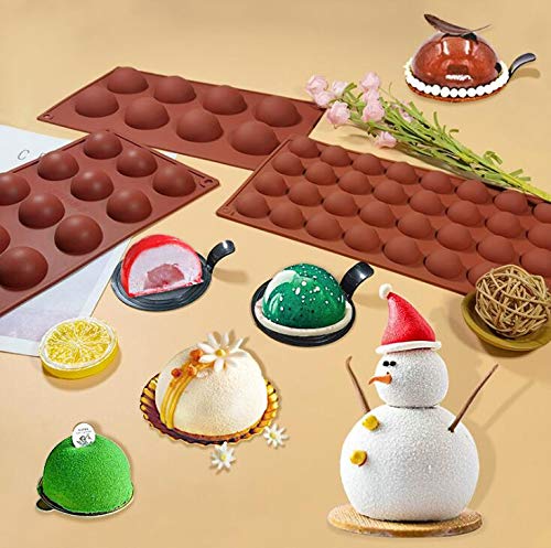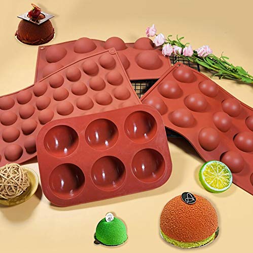 VOANZO - قالب خبز سيليكون نصف دائري 5 فتحات قوالب كيك على شكل قبة مجموعة ادوات لصنع البودينغ والحلوى والشوكولاتة وتزيين الكيك بني