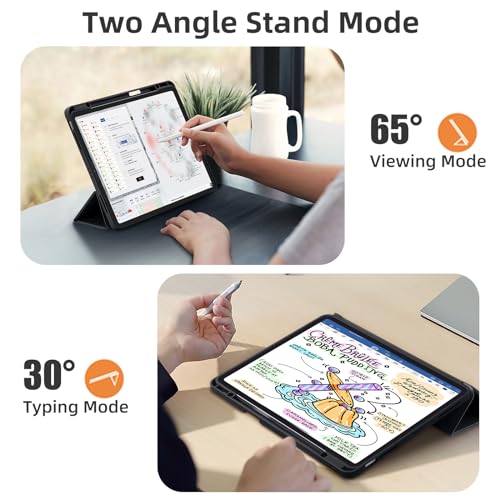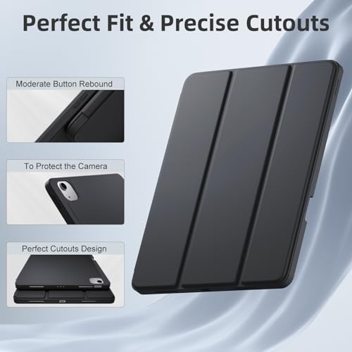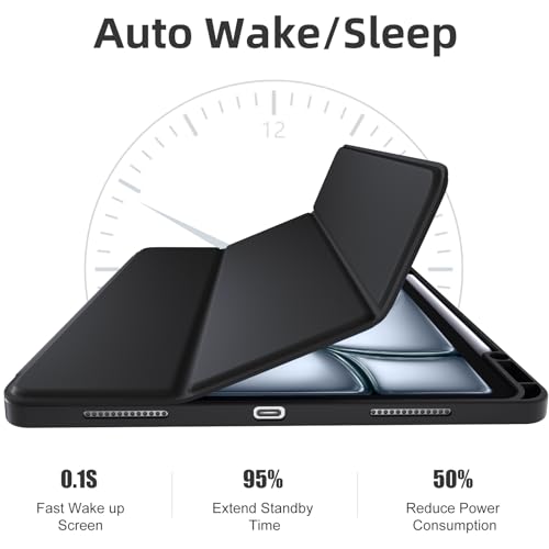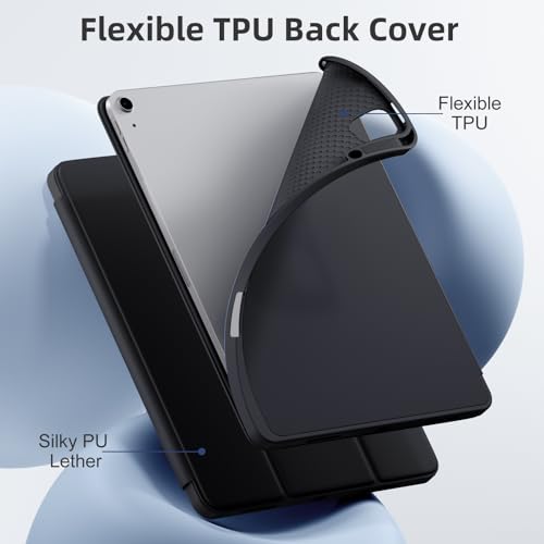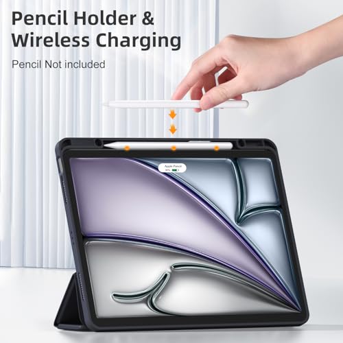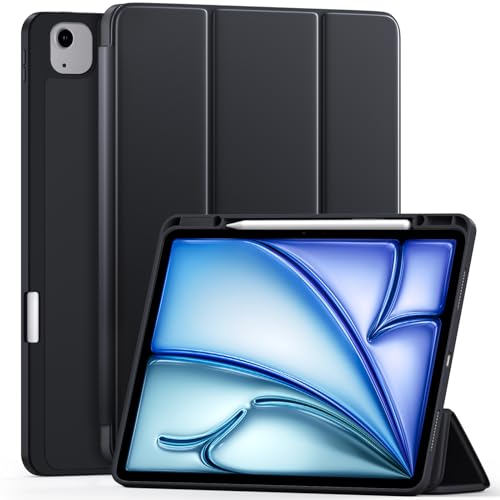 Vobafe - جراب لجهاز اي باد اير 13 بوصة 2024 من فوبافي، غطاء خلفي مرن من البولي يوريثين المقاوم للحرارة مع حامل قلم لجهاز اي باد اير 13 M2، يدعم شحن قلم برو، مع خاصية التنبيه والنوم التلقائي، أسود