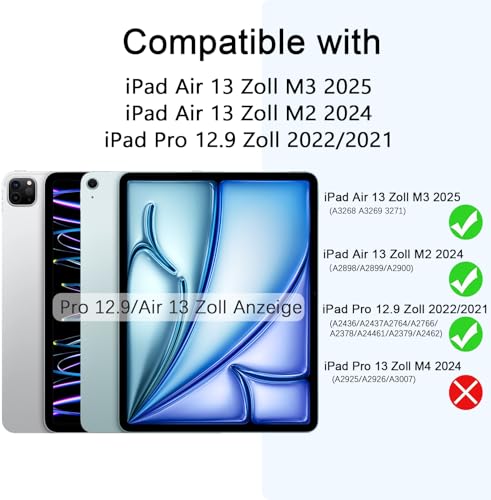 - التوافق: تم تصميم هذا الجراب خصيصًا لجهاز اي باد اير 13 بوصة. متوافق فقط مع جهاز آبل اي باد اير 12.9 2024 (موديل رقم: ). يرجى ملاحظة أنه غير متوافق مع أي موديلات أجهزة تابلت أخرى.