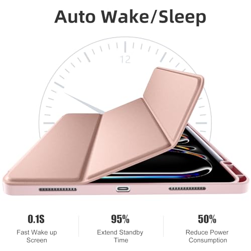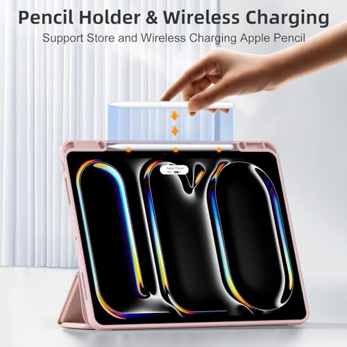 Vobafe - حافظة حماية من فوبيف متوافقة مع آيباد برو 13 بوصة الجيل السابع 2024، كيس مصنوع من الجلد والمايكروفايبر باللون الوردي