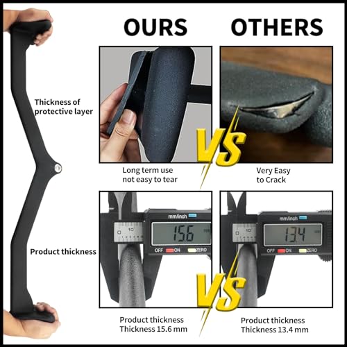 - جودة موثوقة: مصنوع من الستيل شديد التحمل بسمك 11 ملم وطلاء مطاطي عالي الجودة 6 ملم، يتميز قضيب السحب LAT الخاص بنا بسمك إجمالي 17 ملم. وهذا يضمن متانة ومتانة ملحوظة، مما يزيل المخاوف بشأن الانحناء أو التشقق أو تآكل الطلاء.