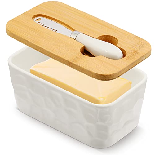 - 【سهل الاستخدام】طبق الزبدة السيراميك الأبيض هذا مع غطاء وسكينة زبدة، السكينة الموجودة على أخدود غطاء الزبدة مصنوعة من فولاذ مقاوم للصدأ 304. يمكنك استخدامها لتقطيع الزبدة وتوزيع الخبز. يمكن استخدام غطاء البامبو كلوح تقطيع. مريحة جدًا ومفيدة.