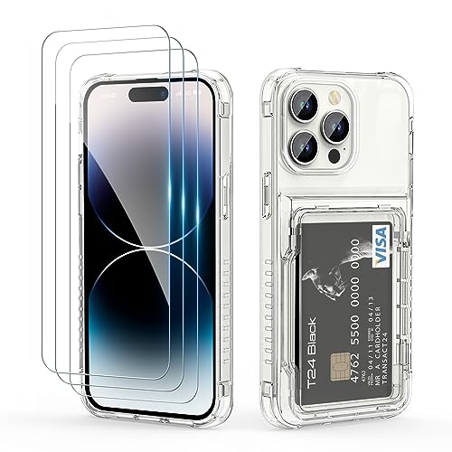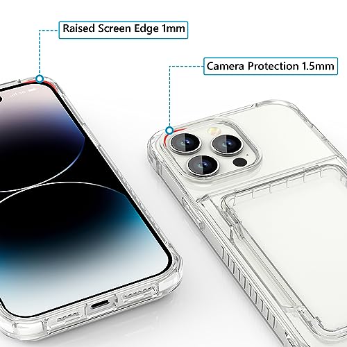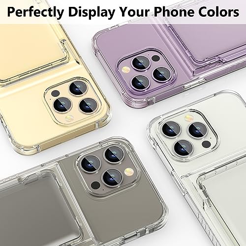 Vofolen - جراب موبايل شفاف مع حامل للكروت بباب قابل للطي 3 قطع شاشة مضاد للخدش من البولي يوريثين الحراري الناعم + غطاء ظهر صلب للصدمات للبنات لجهاز أيفون 14 برو 6.1 بوصة فوفولين