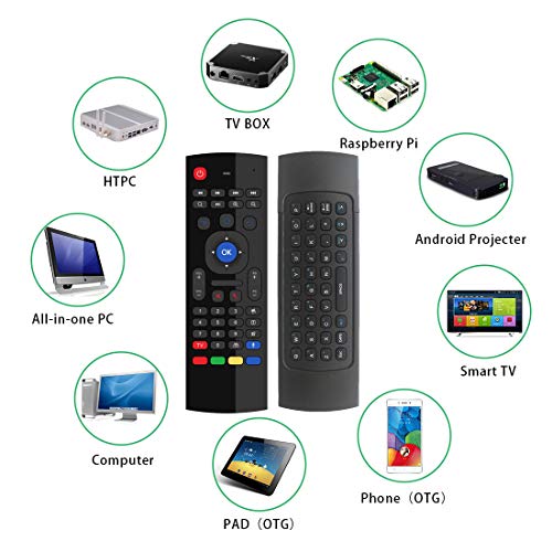 - 2.4 جيجا هرتز- اير فلاي ماوس: 2.4 جيجا Air Fly Mouse + جهاز تحكم عن بعد بصوت + IR عن بعد. متوافق مع جميع أجهزة الأندرويد تقريبًا (التي تحتوي على مدخل USB): صندوق تلفاز أندرويد، كمبيوتر صغير، ويندوز، HTPC وPCTV. (بطارية 2xAAA غير متضمنة)