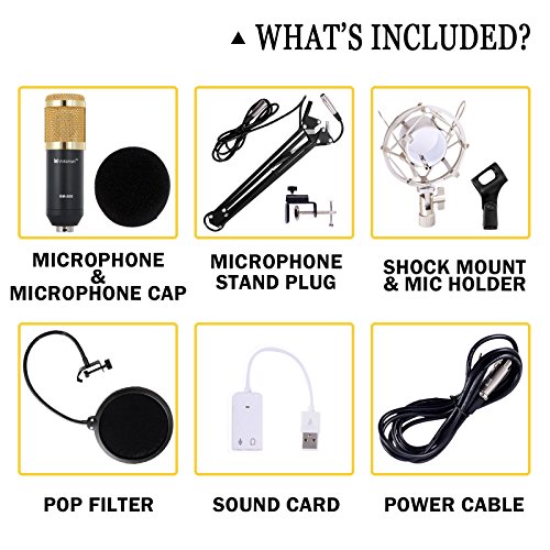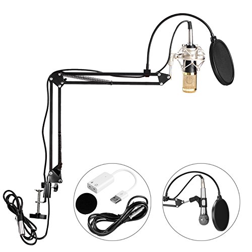 Voilamart - ميكرفون للتسجيل الاحترافي بالاستوديو والبث الاذاعي من فويلامارت، مع حامل تعليق قابل للتعديل