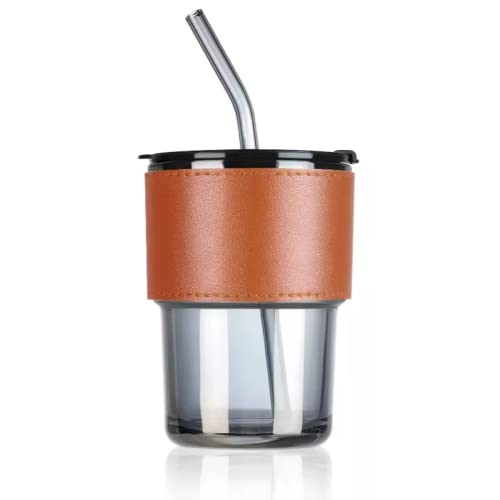 Spaceshoop - كوب زجاج للسفر مزود بغطاء، وشفاطة سيليكون وغطاء واقي مانع للانزلاق من الجلد للمشروبات الساخنة والباردة والشاي والقهوة وعصائر السموذي وعصير الفواكه (1 قطعة، 435 مل، الوان متنوعة)