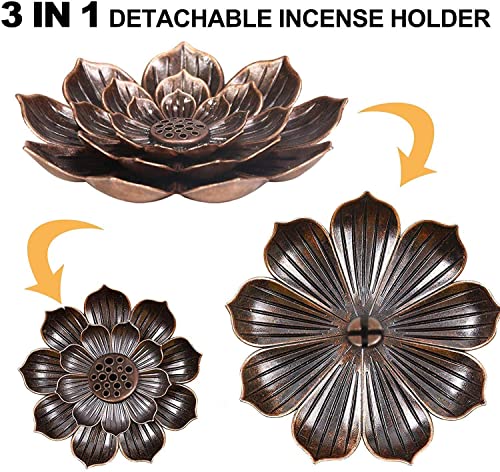 Vok - مبخرة على شكل زهرة اللوتس من النحاس بتصميم مخروطي مع ملقط رماد قابل للفصل للمنزل والمكتب واليوجا والتأمل من فوك، 2 قطعة