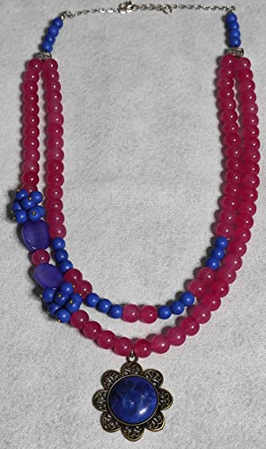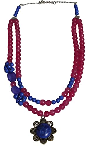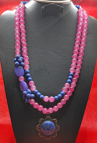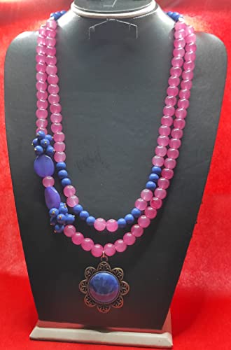Generic - عقد من حجر الالباستر والحجر البركاني والعقيق - باللون البينك في الازرق في موف - قلادة زرقاء نحاسية - من اكسسوارات مليكة، للنساء