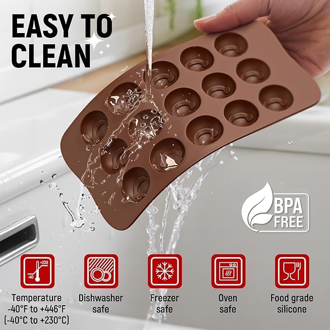 - مادة السيليكون: مصنوعة من سيليكون عالي الجودة، مرنة وسهلة الاستخدام لإخراج الشوكولاتة دون التصاق أو كسر