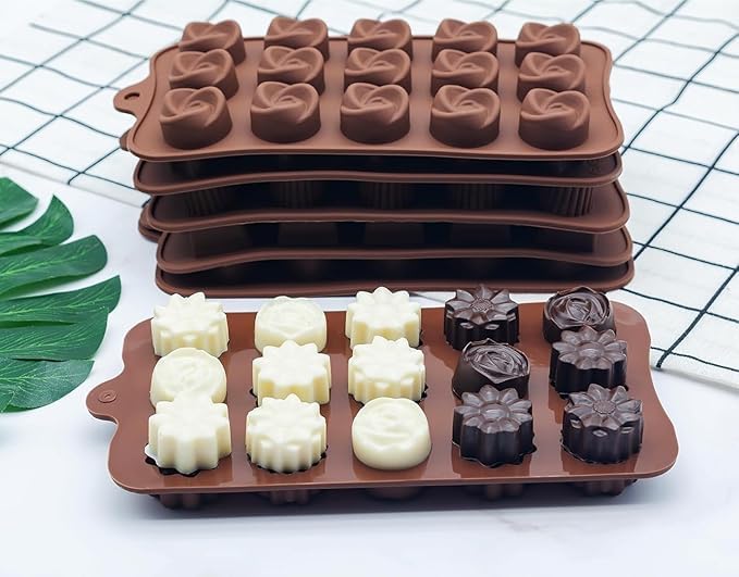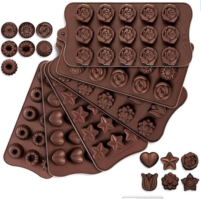 - تصميم عملي: قوالب مرنة تسمح بإزالة الشوكولاتة بسهولة دون تلف الشكل النهائي، مناسبة للاستخدام المنزلي والمهني