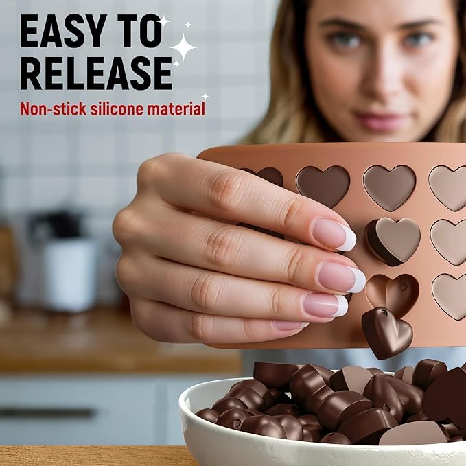 - متعددة الاستخدامات: مثالية لصنع الشوكولاتة الصلبة، الحلوى، الجيلي، مكعبات الثلج، والعديد من الحلويات الأخرى
