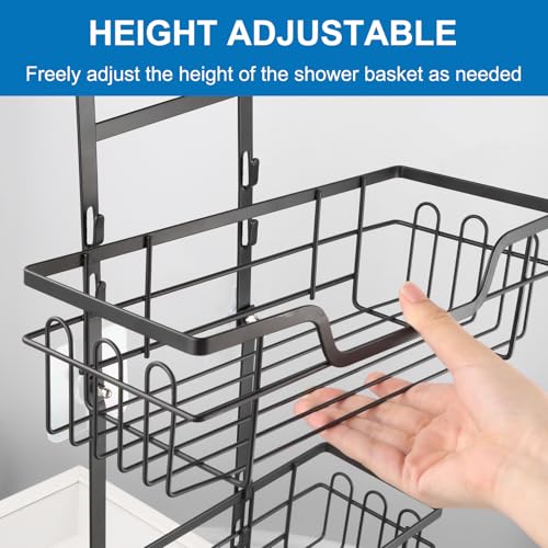 - 【مساحة تخزين كافية】مع سلة استحمام من طبقتين وطبقين إضافيين للصابون يمكن لعلبة الاستحمام الخاصة بنا تخزين زجاجات متعددة من الشامبو والبلسم، ويمكن للخطاف الموجود على الجانب تعليق كرة الاستحمام وشفرة الحلاقة وما إلى ذلك.