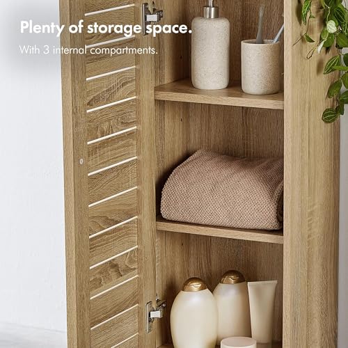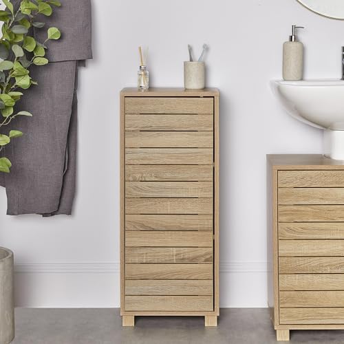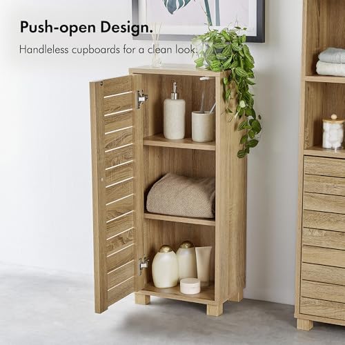 VonHaus - وحدة تخزين للحمام دولاب أرضية حمام بمظهر خشب البلوط بتصميم بدون مقبض خزانة صغيرة قائمة على الأرض والمطبخ والممر من فونهاوس بني