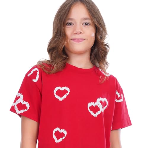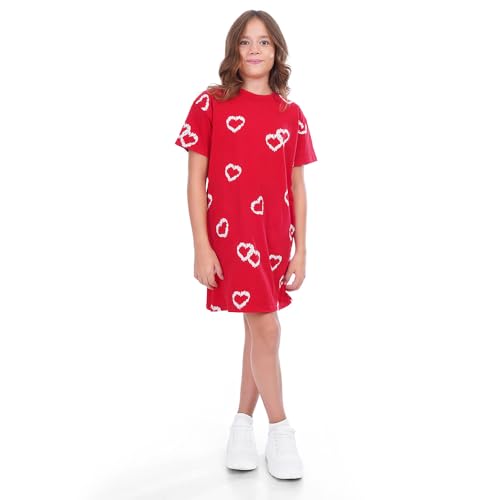VONKEL - فستان للبنات من فونكل بتصميم مزين بطباعة قلوب للبنات بعمر 7 سنوات، أحمر