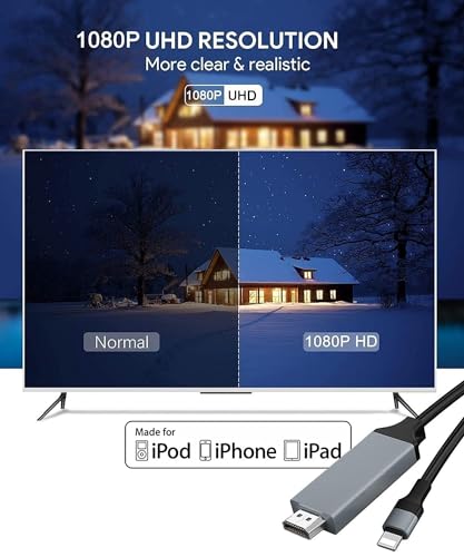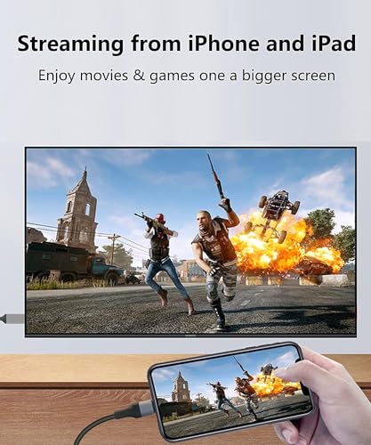 - [أحدث ترقية، لا تتطلب مصدر طاقة] رقاقة متقدمة عالية الأداء، يمكن أن تضمن نقل عالي السرعة، ومزامنة الفيديو عالي الدقة والصوت الرقمي. بعد التوصيل، لا حاجة لشحن محول ايفون إلى اتش دي ام اي، بدون واي فاي، بدون نقطة اتصال أو إعدادات. يمكنك عكس الأجهزة على تلفزيون متوافق مع HDMI في أي وقت، أو الاستمتاع بالمسرح المنزلي.