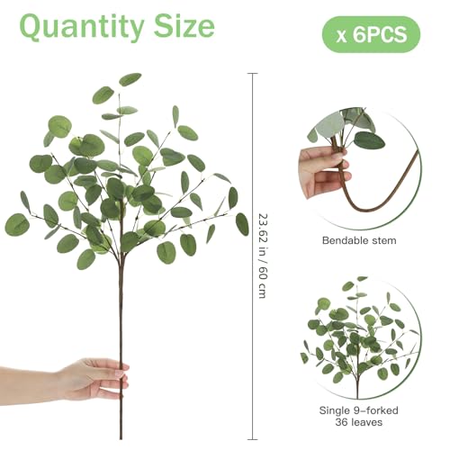 - كمية وفيرة وحجم مثالي - تتضمن العبوة 6 سيقان اوكالبتوس صناعية، طول كل ساق 61 سم مع 36 ورقة كثيفة. حجم وكمية مثالية لتغطية ديكور كاملة ونابضة بالحياة.