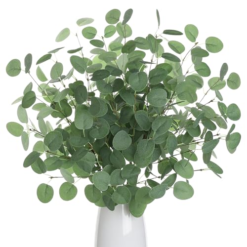 Voqoza - باقة سيقان اوكالبتوس صناعية، سيقان خضراء بأوراق صناعية من حرير، فروع ديكور صناعية لتنسيق الطاولات وتزيين المنزل والحفلات وديكور حفلات الزفاف من فوكوزا، 6 قطع