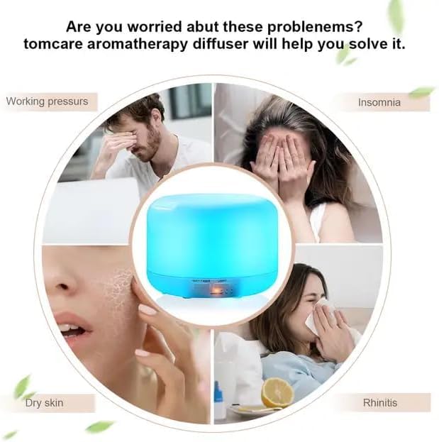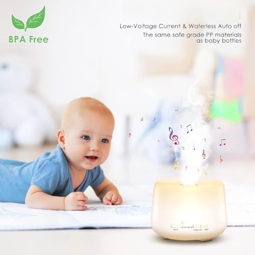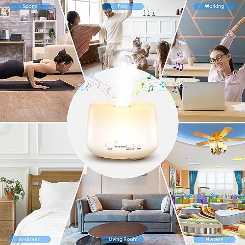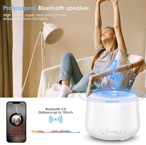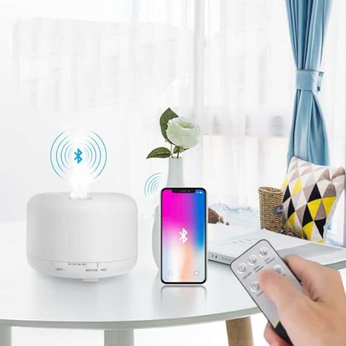 DOMA - فواحه بخار ومنقي ومرطب للهواء كهربائية بمكبر صوت وبلوتوث لغرف الكبيرة وغرفة النوم والمكتب والمنزل بـ14 لون اضاءة ليلية مع ريموت كنترول، 4 تايمر ,500 مل