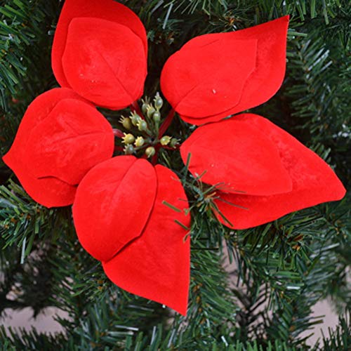 VORCOOL - مجموعة من 20 قطعة زينة شجرة الكريسماس الاصطناعية على شكل نجمة ورؤوس زهور لتزيين المنزل والباب الأمامي فوركوول - بلون أحمر