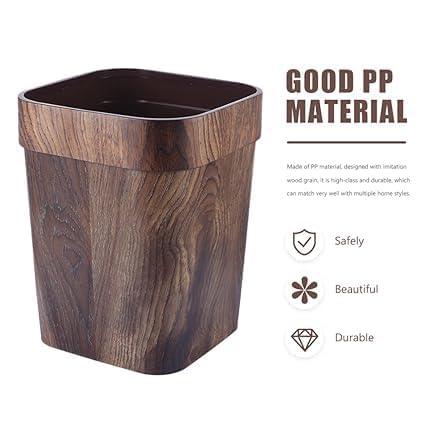 - سلة مهملات بتصميم كلاسيكي من الخشب المحبب بتصميم أنيق وساحر للمنزل والمكتب.