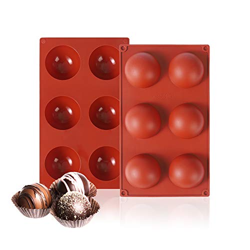 VOSIGREEN - قالب سيليكون شبه كروي من فوسي جرين خبز نصف بـ 6 فتحات كبيرة خالي مادة بيسفينول ايه لصنع كرات الشوكولاتة الساخنة والكيك والجيلي وحلوى دوم موس والبودنج والصابون المصنوع يدويا عبوة قطعتين