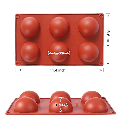 - 【المقاس الصحيح】مقاس قالب السيليكون الخاص بنا هو: 11.4 انش × 6.6 انش × 1.38 انش، وقطر كل تجويف 2.6 انش، وهو الحجم الصحيح لصنع كرات الشوكولاتة الساخنة أو كرات الكاكاو.