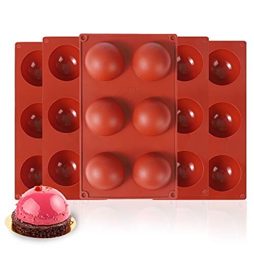 VOSIGREEN - قالب سيليكون شبه كروي من فوسي جرين، قالب خبز نصف كروي بـ 6 فتحات كبيرة خالي من مادة بيسفينول ايه لصنع كرات الشوكولاتة الساخنة والكيك والجيلي وحلوى دوم موس والبودنج والصابون المصنوع يدويا، عبوة 5 قطع