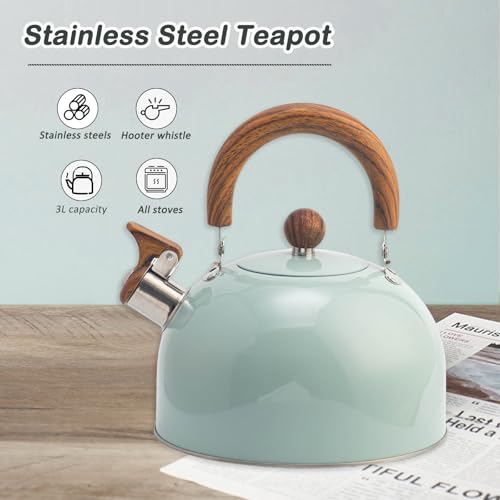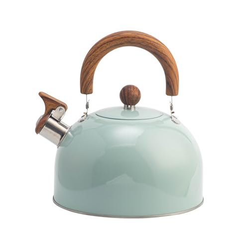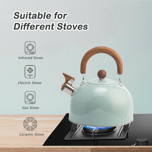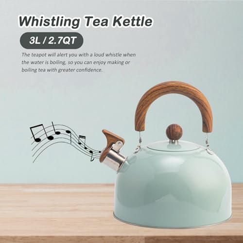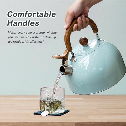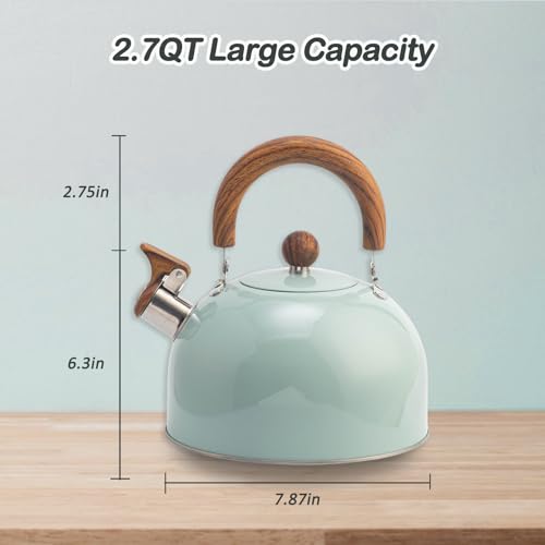 VOTTERCO - غلاية شاي من فوتركو بسعة 2.7 كوارت، ابريق شاي كلاسيكي بصفير لسطح الموقد مع قاعدة عالمية، ابريق شاي من الستانلس ستيل الامن غذائيا بمقبض مريح، مناسب لجميع مصادر الحرارة (ازرق)