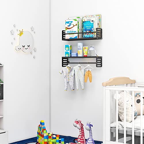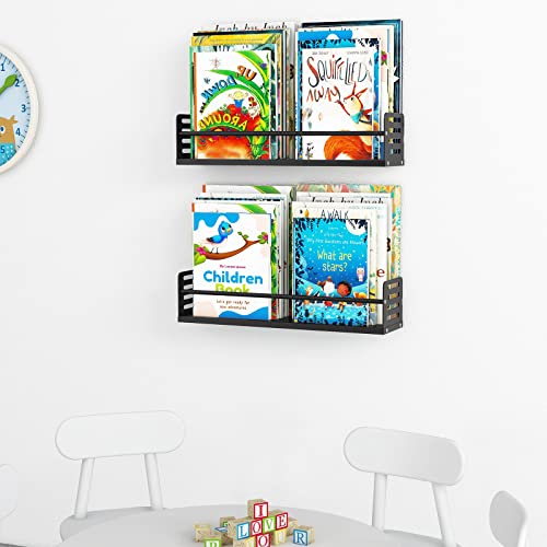 VOTZAAQ - مجموعة من 2 رف حائط معدني عائم لغرفة الاطفال فوتزاك كتب للاطفال الصغار للكتب والالعاب والديكور اسود غير لامع