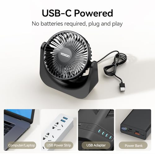 VOXON - مروحة مكتب وطاولة محمولة بتصميم صغير للتبريد بخمس سرعات قابلة للتعديل بتدفق هواء قوي مزودة بتصميم صامت للنوم مع كابل بطول 1.5 م للمكتب والمنزل وغرفة النوم والمطبخ والتخييم من فوكسون
