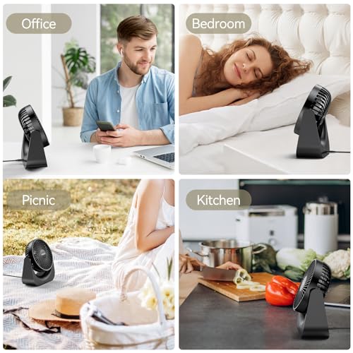 - 🍃【حجم صغير واستخدام واسع】 هذه مروحة الصغيرة مقاس 5.5 بوصة (14 سم)، تتمتع بمقاس 17 × 16 × 6 سم، ووزن 217 جم، لذا فهي خفيفة الوزن وموفرة للمساحة. هذه المروحة المحمولة مثالية للعمل أو المكتب أو غرفة النوم أو المنزل أو غرفة النوم أو المكتبة أو التخييم أو السفر أو أي مكان تحتاج فيه للاسترخاء والانتعاش طوال اليوم. تصدر ضوضاء لا تذكر أقل من 50 ديسيبل تجلب لك متعة الهدوء.