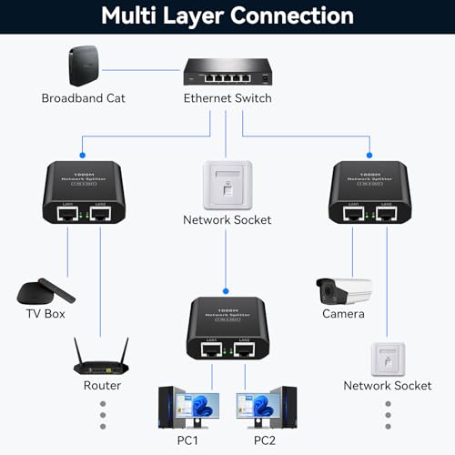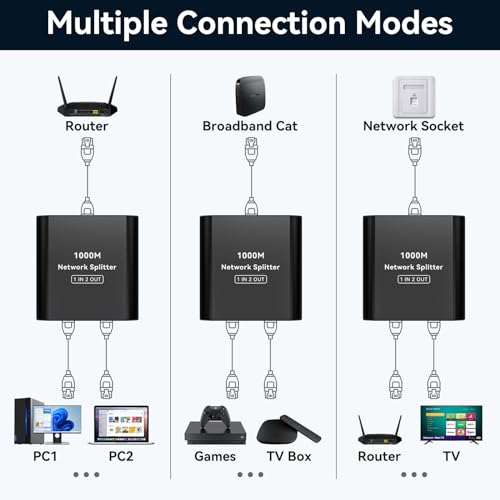 - 【توافق واسع】موزع مقسم ار جيه 45 متوافق مع الموزعات والمفاتيح وأجهزة التلفزيون وأجهزة فك التشفير وأجهزة الراوتر والأجهزة الأخرى. يمكن أن يوفر اتصال شبكة مرن ومستقر لسيناريوهات الاستخدام المختلفة. يعمل مع كابلات شبكة ايثرنت من نوع Cat5e وCat6 وCat7 وCat8 (ولضمان سرعة النقل، يُرجى استخدام كابل من نوع CAT6).